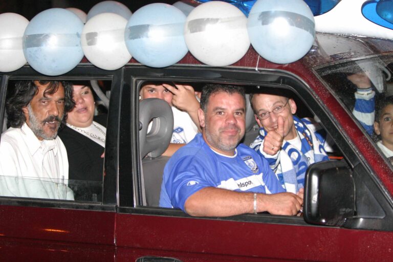 Ο Κώστας Παπαχριστοφόρου με τον Πίτερ Πάγκαλο συνοδηγό, οδεύουν προς το σιντριβάνι του Αγίου Νικολάου μετά το τελικό σφύριγμα στο Τσίρειο στάδιο και την κατάκτηση του τίτλου την σεζόν 2005/06! Ήταν Σάββατο 6 Μαΐου που Λεμεσός φόρεσε τα γιορτινά της…