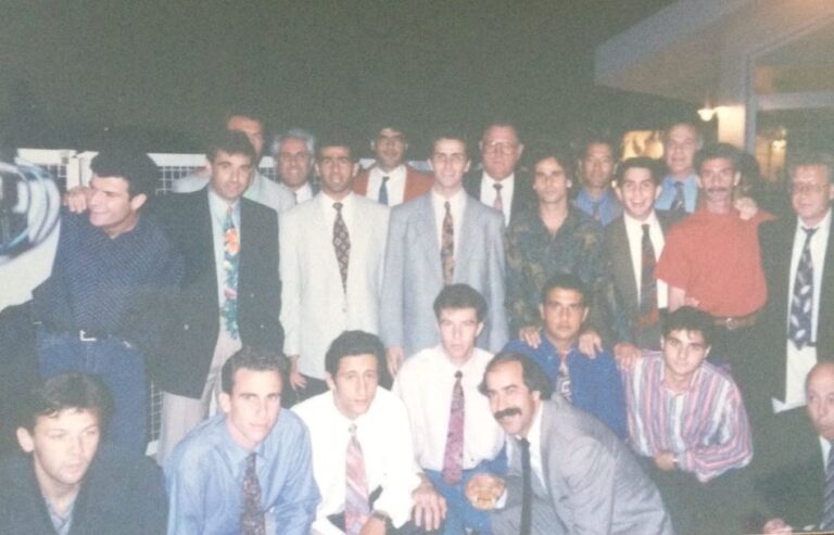 Share Facebook Twitter LinkedIn Pinterest Email WhatsApp Επίσημο ντύσιμο των 90’s με τις πολύχρωμες γραβάτες να έχουν την τιμητική τους! Αναμνηστική φωτογραφία από τα επινίκια μετά και την κατάκτηση του τίτλου την σεζόν 1993/94!