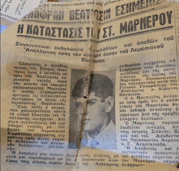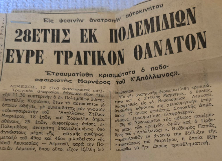Ο συνοδηγός του οχήματος, ήταν ο τότε ανερχόμενος αστέρας της ομάδας μας Στέλιος Μαρνέρος. Οι μέρες που ακολούθησαν σύμφωνα με μαρτυρίες αλλά και τον Τύπο της εποχής ήταν εφιαλτικές για τους συγγενής και φίλους του Μαρνέρου όπως επίσης και για όλους του «κυανολεύκους» υποστηρικτές.