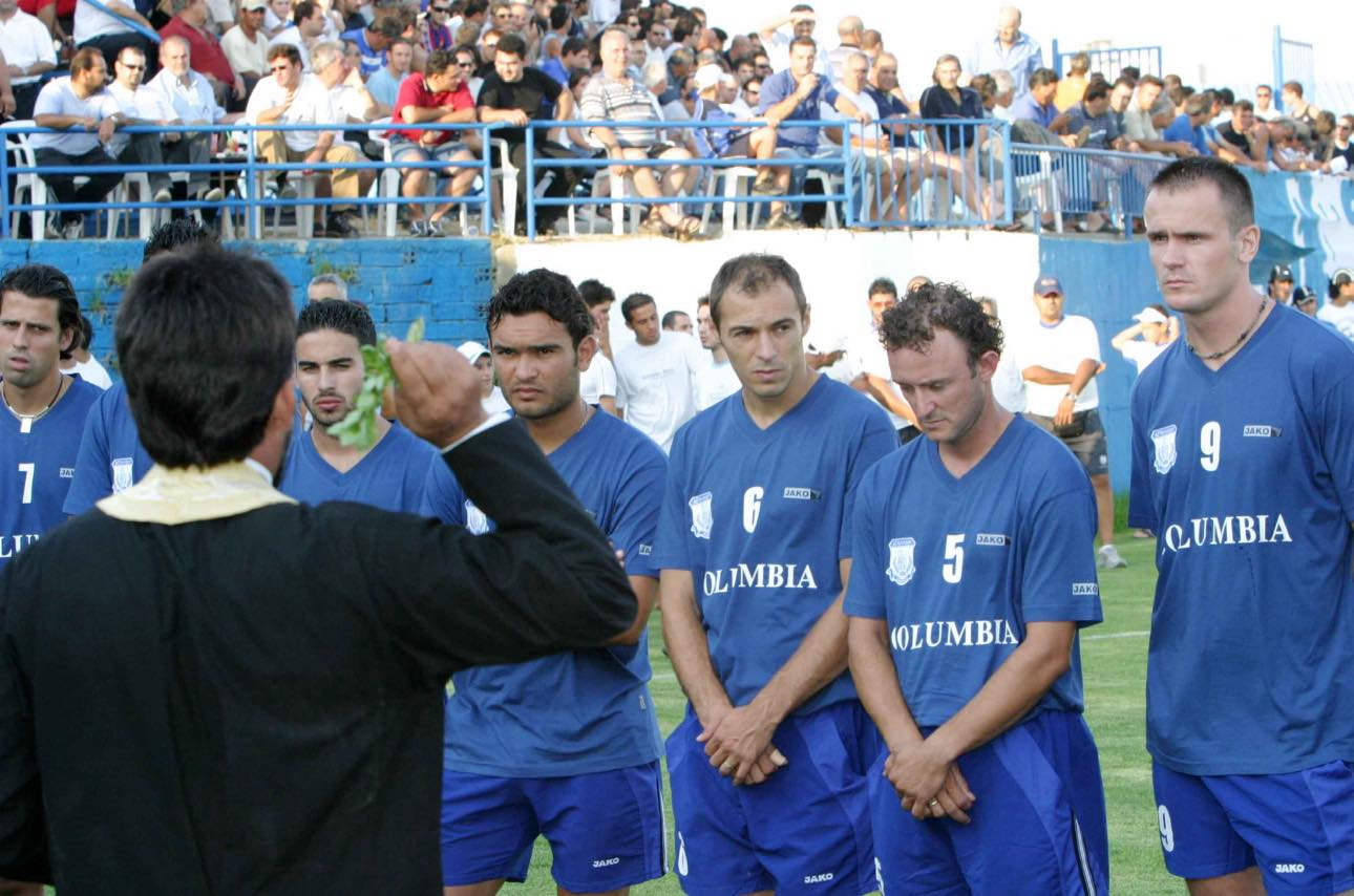 Ήταν ο καθιερωμένος αγιασμός εκεί στο βοηθητικό, με τους παίκτες κάποιοι να χαμογελούν αμήχανα, και άλλοι να κοιτάζουν τα πρόσωπα στην κερκίδα, αναγνωρίζοντας εκείνους που δεν έλειπαν ποτέ, ούτε στα δύσκολα, ούτε στα εύκολα.