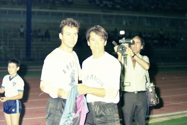 Share Facebook Twitter LinkedIn Pinterest Email WhatsApp Το καλοκαίρι του 1990 ο #Θράσος_Κονιώτης στην τιμητική του παραδίδει την φανέλα με το νούμερο «1» στον #Μιχάλη_Χριστοφή… Τα υπόλοιπα είναι πια #ιστορία…
